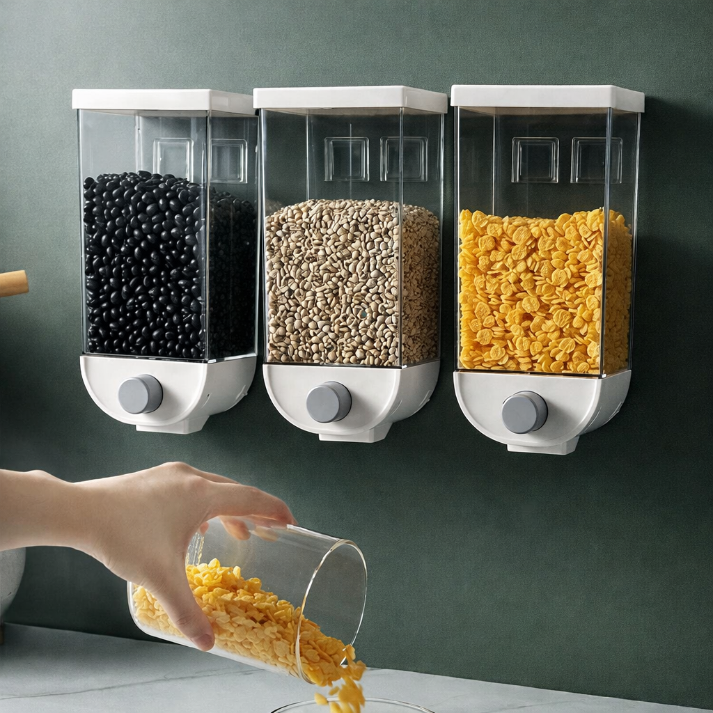 Loose grains and food items can create clutter in the kitchen. This Wall Mounted Grain Storage Box helps store dry items neatly while saving valuable kitchen space with its smart wall-mounted design.